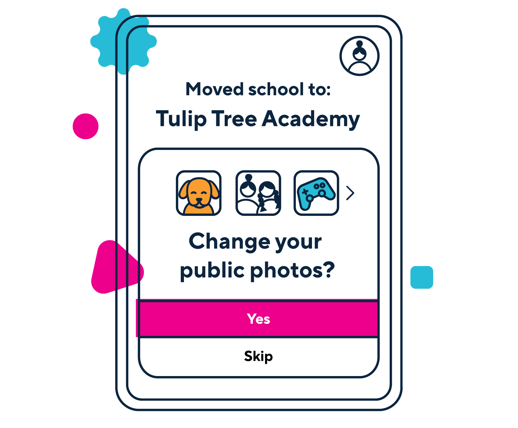 Example of external milestone privacy ‘moment’: Give children the opportunity to control what personal data they share as they develop.