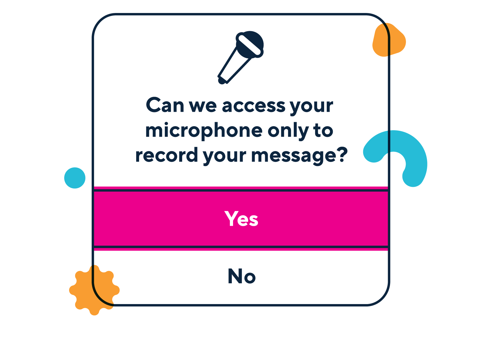 Example of a just-in-time notice: Ask permission to access personal data when you collect it so children understand what happens to their data and why.