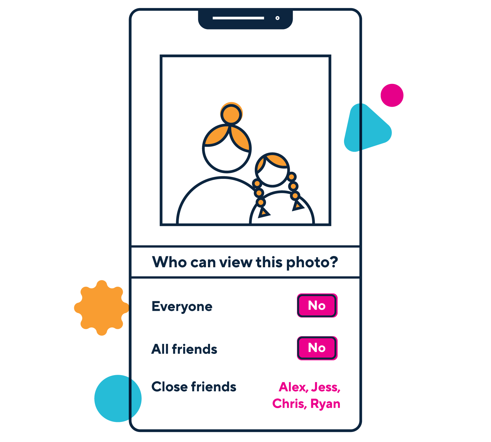 Example of children’s privacy settings on a shared device: Allow children to set up their own profiles and have their own privacy settings.