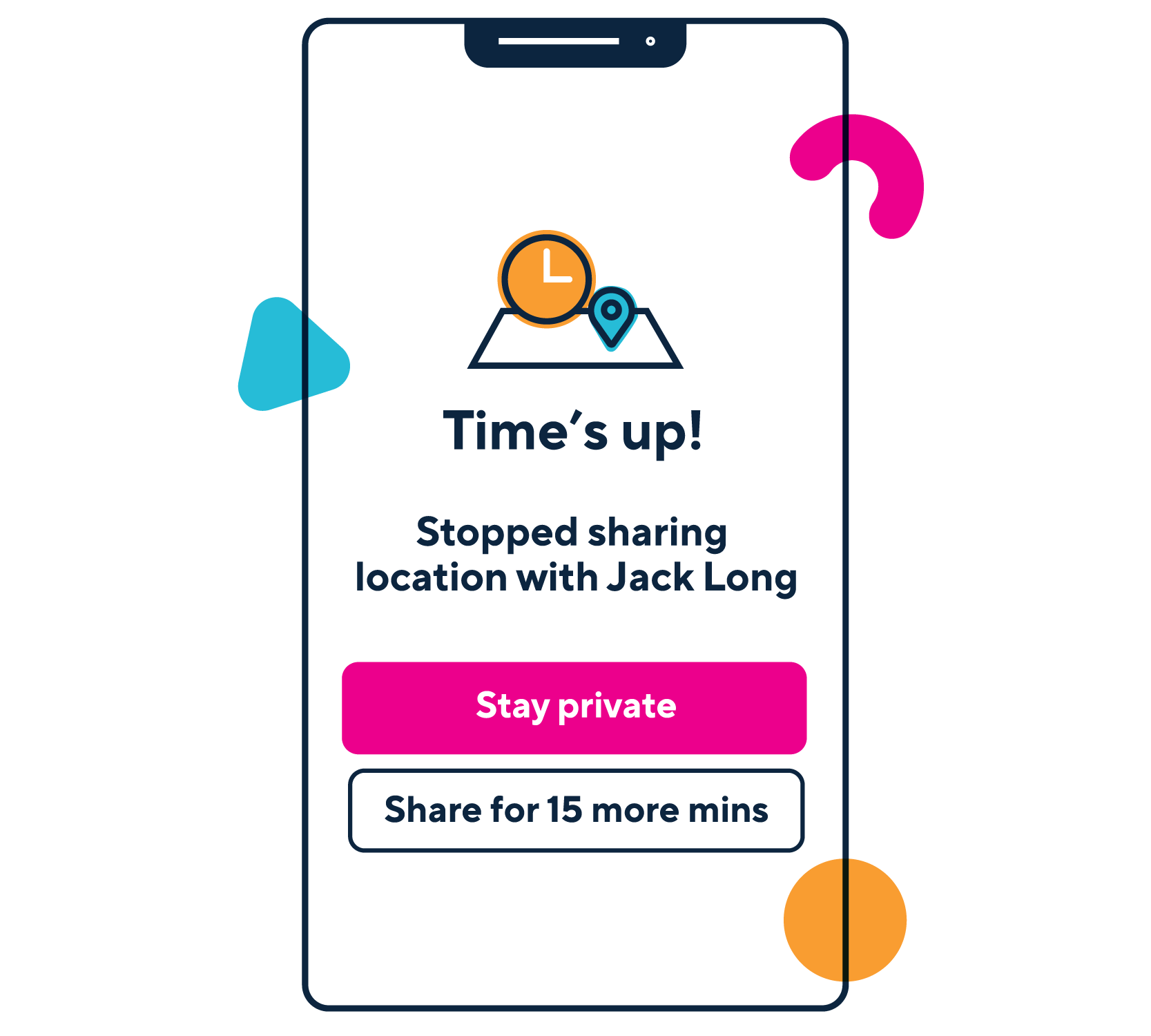 Example of temporary privacy setting change: Share location data for a set amount of time.