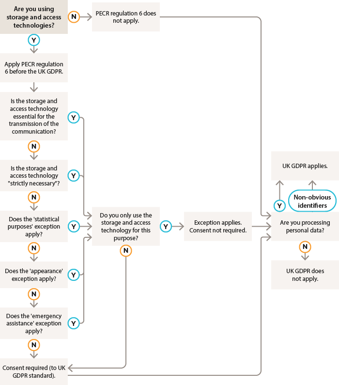 - If you are using storage and access technologies, you must consider PECR compliance before you look to the UK GDPR.
