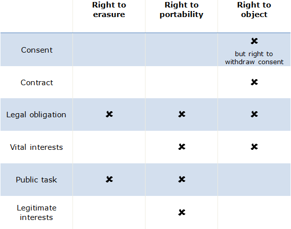 The lawful basis for your processing can also affect which rights are available to individuals. For example, some rights will not apply: