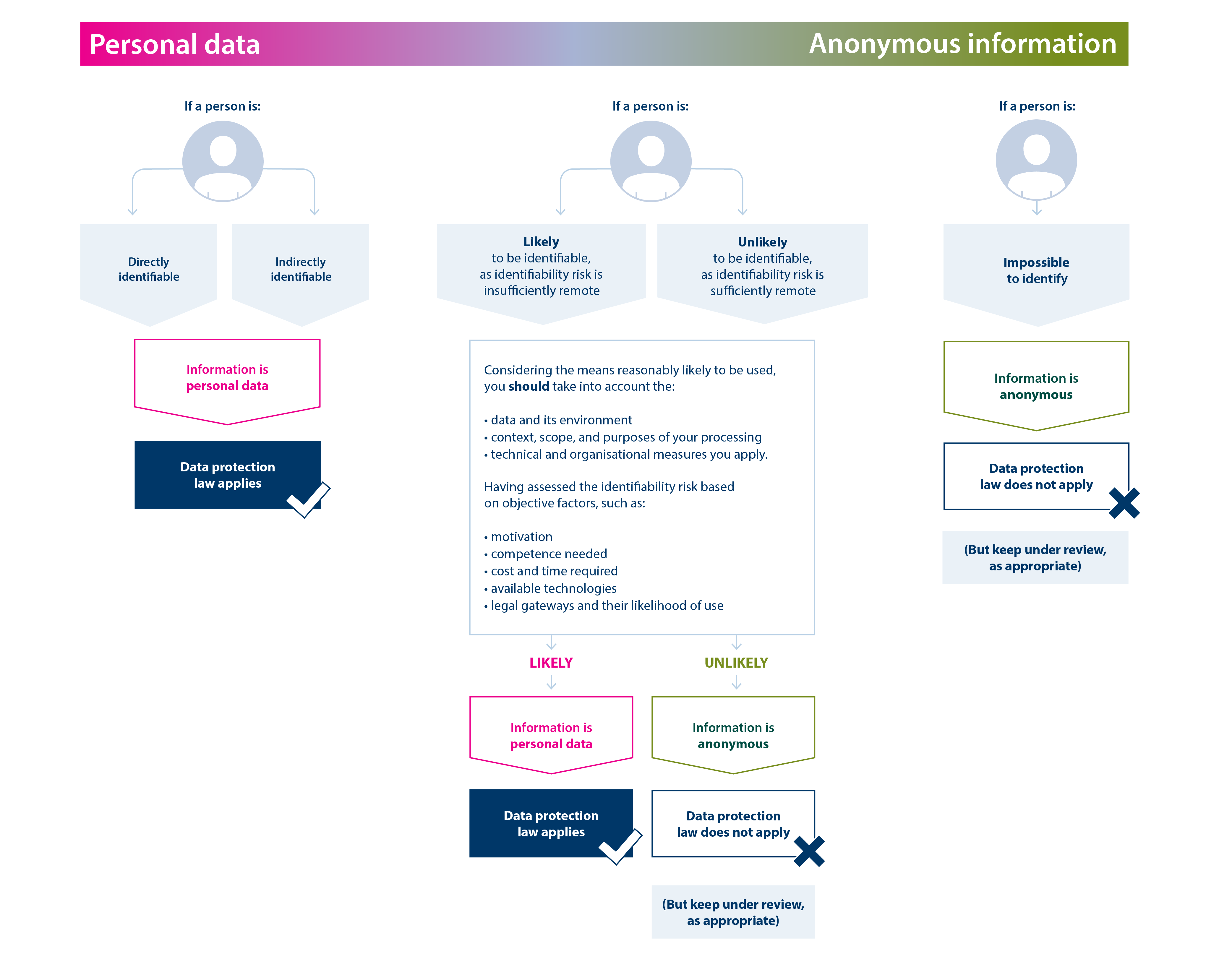 - Identifiability exists on a spectrum. When assessing whether someone is identifiable, you should take account of the “means reasonably likely to be used to enable identification”. There are likely to be many borderline cases where you should use careful judgement based on the specific circumstances of the case.