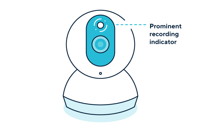 A graphic shows a smart security camera indicating a camera light being on when recording video footage.