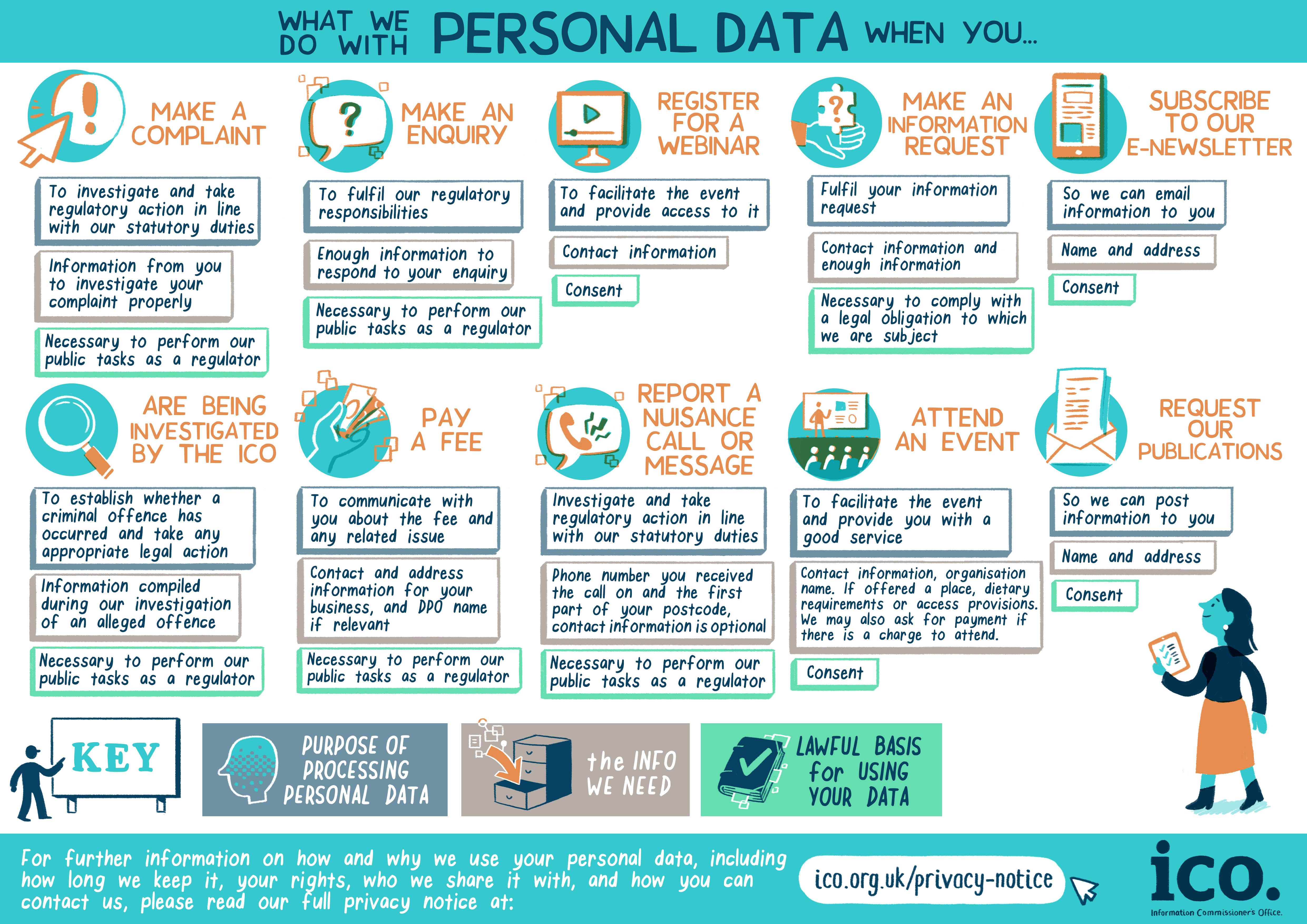 View our 'what we do with your personal data when you...' infographic for a basic overview of the below information.